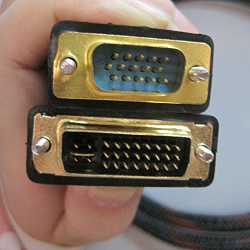 This high-quality cable has a male dual-link DVI 24+5 pin (DVI-I), connector, and a 15-pin VGA male connector. Please note, DVI 24+5 plugs will not fit into or work with a DVI 24+1 pin (DVI-D) port. Please check your video port for pin type before ordering.