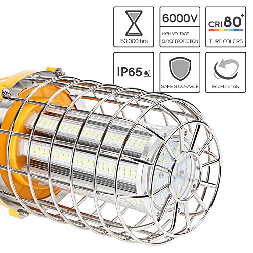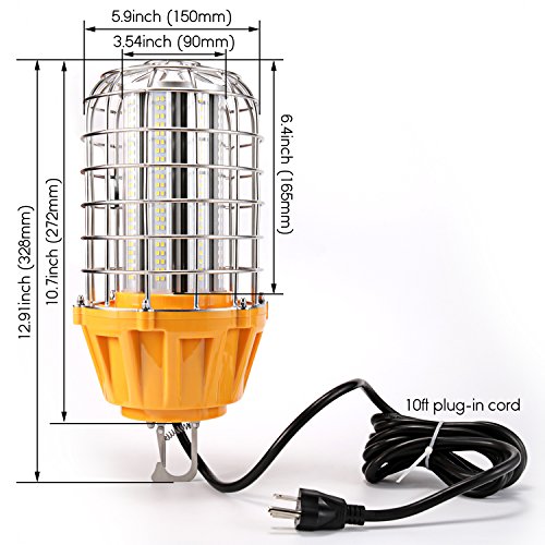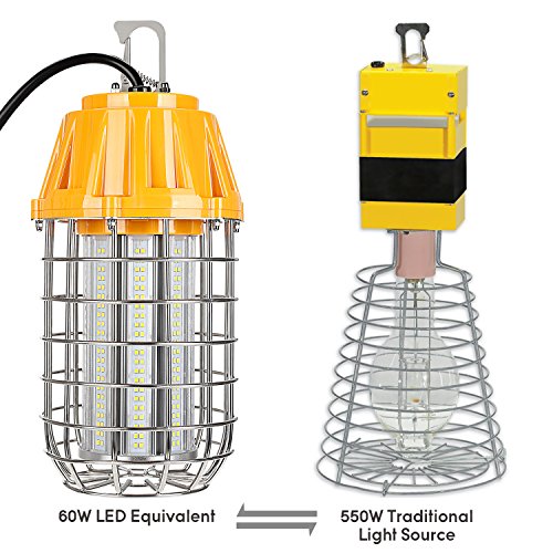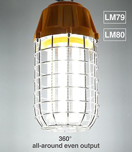 High Bay LED Temporary Work Light Fixture, 5000K Daylight, 60W (550W Equiv.), 8400Lm, IP65 Dust & Waterproof, 5 Year Warranty, Stainless Steel Guard, Plug-n-play, DLC & UL-listed