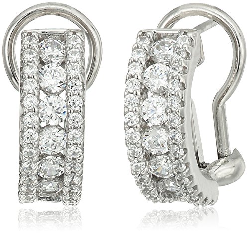 platinum plated sterling silver swarovski zirconia round omega back hoop earrings