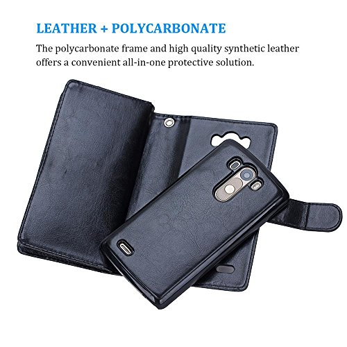 - Feature : True Wallet Case: 9 Slots (with ID window slot) and inner pockets to Conveniently Hold many credit cards and cash / 2-in-1 Hybrid Case: With this unique LG G3 wallet case you get the complete protection and convenience of a wallet folio, without sacrificing the superior handling of a slim case / Precise Cutouts for camera and other functional ports / Easy Snap-On Installation / Secure Magnetic Closure, and Smart Inner Button Lock to Securely Hold Credit Cards and Cash