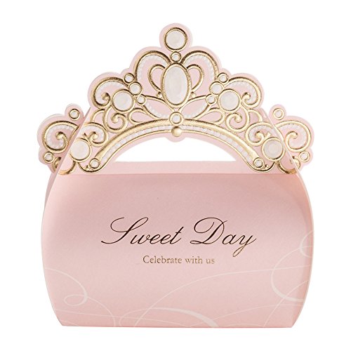 Into 50 Pcs Shiny Glitter Crown Sweet Day Wedding Party Candy Favor Gift Boxes Pink/Red