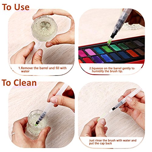 - EASY TO USE: Simply to squeeze barrel to easily control the ink or water flow. To use, blend with water, add ink to barrel and enjoy! (Note: Please make the water less than 2/3 of the pen's volume when filling water into the pen)