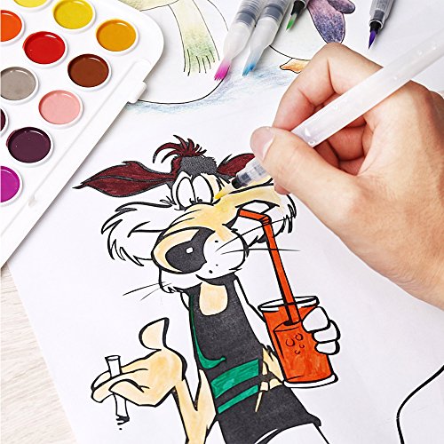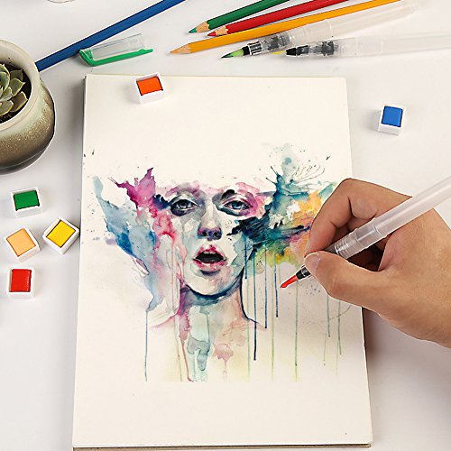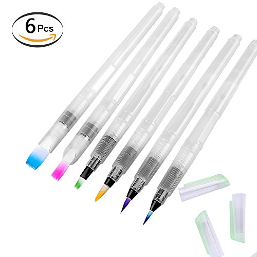 Water Coloring Brush Pens Watercolor Brushes Set of 6 Brush Tips for Watercolor Painting Water Soluble Pencils Brush Pens Markers Solid Colors Powdered...