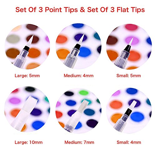 - SET OF 6 BRUSHES: Set of 3 point tip brush pens and set of 3 flat tip brush pens (small, medium, large) suitable for art students, amateur and professional artists