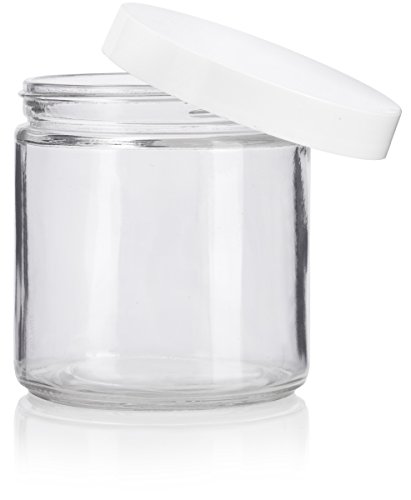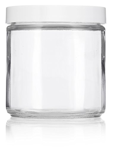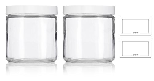 Large Clear Thick Glass Straight Sided Jar with White Foam Lined Lid - 16 oz / 480 ml (2 pack) + Labels