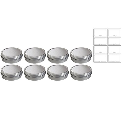 1 oz Metal Steel Tin Flat Container with Tight Sealed Twist Screwtop Cover (8 pack) + Labels