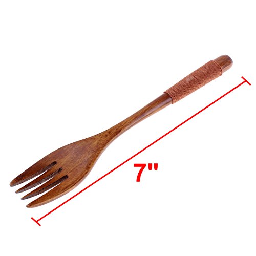 uxcell® Wooden Dinner Food Dessert Salad Serving Cooking Fork 175mm Brown