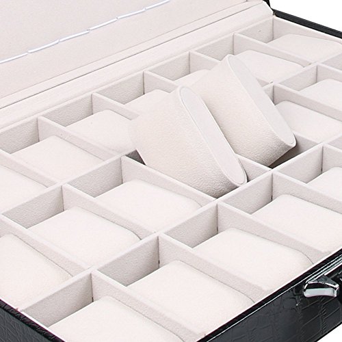 BOCAR PU Leather 24 Slots Hand Watch Box for Personalized Glass Top Watch Case Organizer (SBX-024)