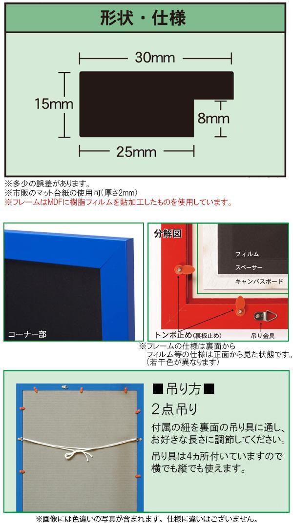 素材・材質フレーム:MDF樹脂フィルム貼加工、裏板:キャンバスボード、表面フィルム:PET