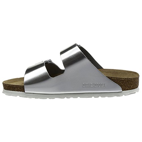 Studio : Birkenstock Publisher : Birkenstock Binding : Shoes Product Description Birkenstock® Size Chart Please be advised that the Birkenstock® Narrow width accommodates both traditional narrow and medium widths. Click here for more information about Birkenstock's widths. Understanding Widths: The Regular icon (outlined foot) accommodates Regular to Wide. The Narrow icon (filled in foot) accommodates Narrow to Regular widths. Stand out and show off your magic style in this metallic Arizona. Metallic leather uppers with an open toe. Slip-on style sandal with two adjustable buckle closures. Raised toe bar is designed to encourage the natural gripping motion of your feet. Suede-lined, anatomically correct cork footbed, molds to the shape of your foot for all-day comfort. The soft footbed features a foam layer inserted between the cork layer and suede liner of the original Birkenstock footbed. Microscopic air bubbles cushion your feet while providing moderate arch support. Neutral heel profile and deep heel cup keeps the natural padding of your foot where it belongs - under the heel. Lightweight EVA outsole helps absorb shock. Heat Warning - Cork footbeds or EVA soles can be damaged by exposure to concentrated heat. Do not leave your footwear in direct sunlight or in closed cars on warm days. If your footwear becomes wet, allow it to air dry slowly, away from direct heat. Made in Germany. Measurements: Weight: 8 oz Product measurements were taken using size 38 (US Women's 7-7.5), width Narrow. Please note that measurements may vary by size. 0