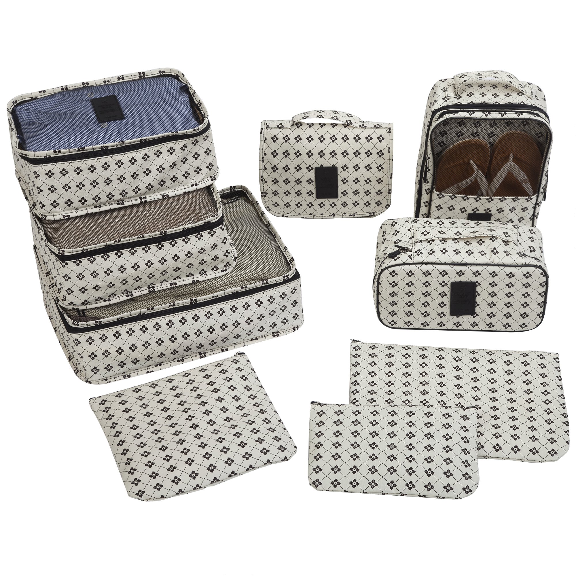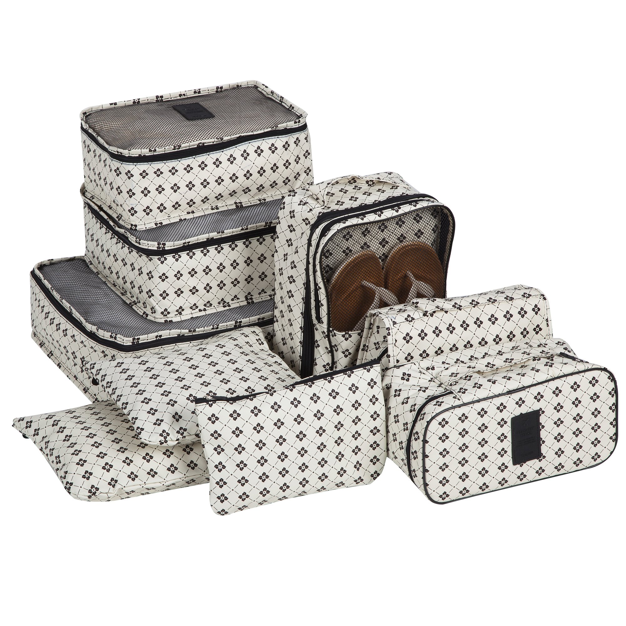 A 9-piece set travel case that is perfect for sorting and storing various clothing and accessories.