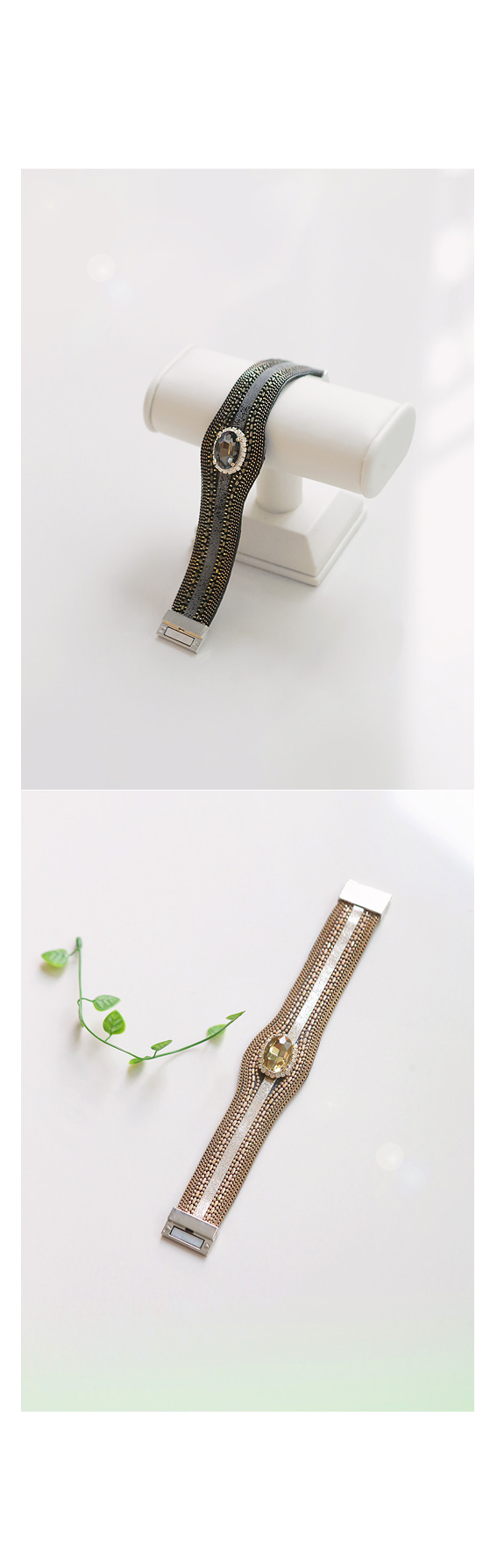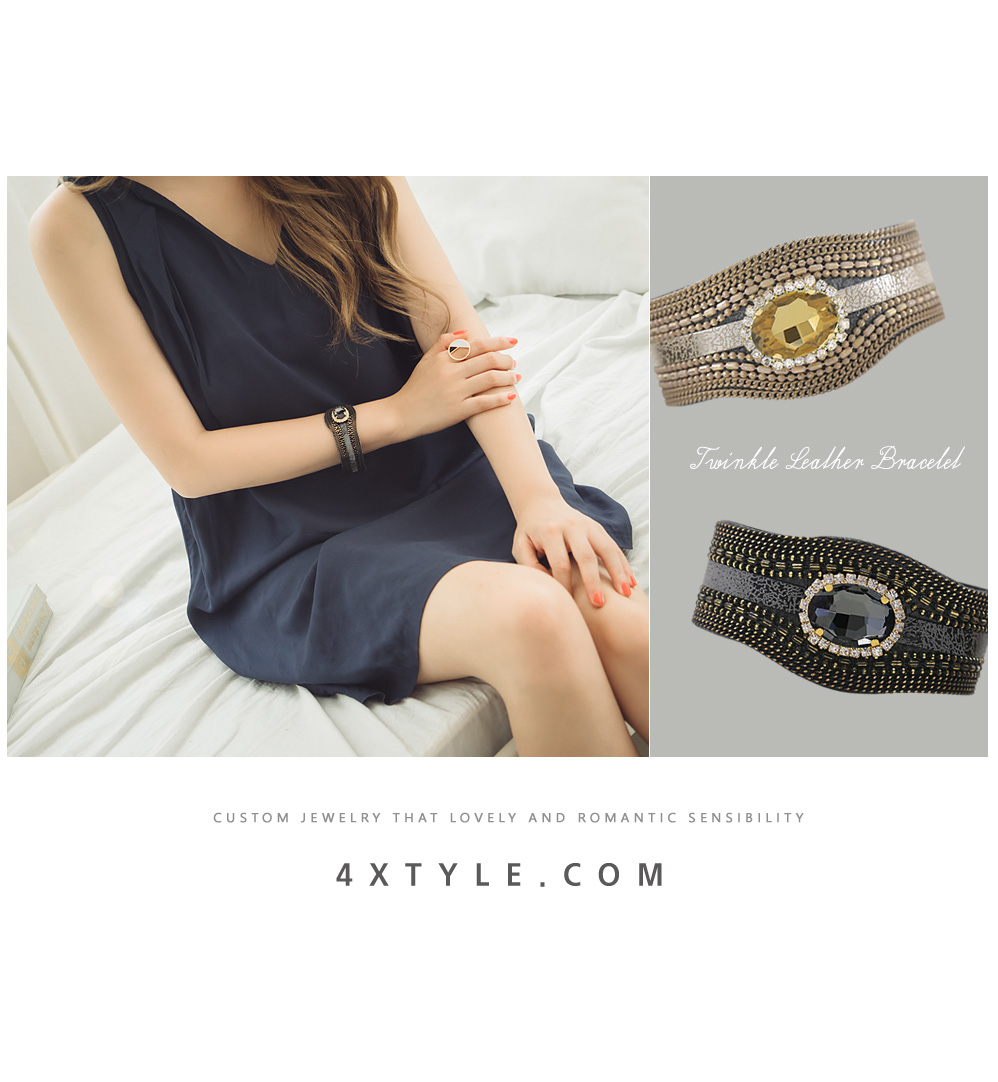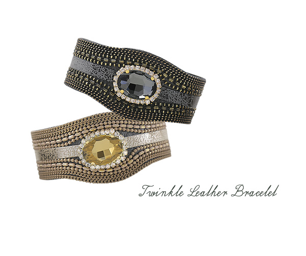 차분한 컬러감으로 봄부터 겨울까지 착용할 수 있는 실용적인 트윙클 가죽 팔찌 에요.