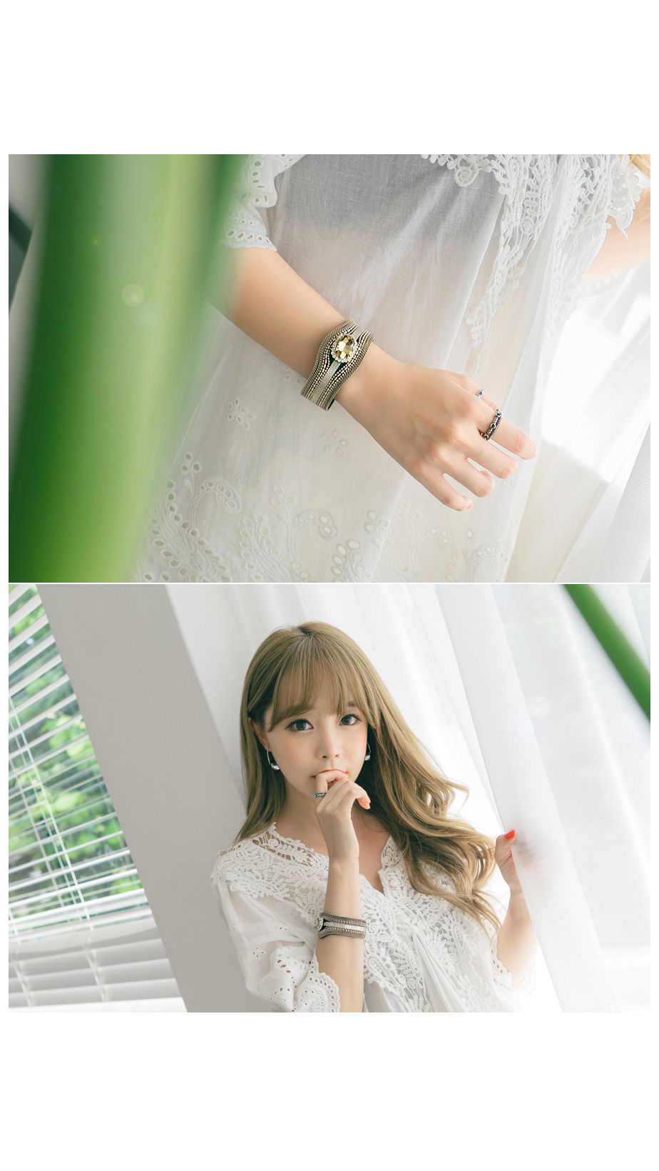 가녀리고 예쁜 손목을 강조해주기에 더 없이 좋은 가죽팔찌.