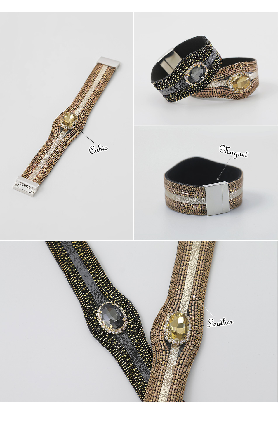 팔목에 착용하는 물림 부분이 자석으로 되어있어 편리하기까지 한 트윙틀 가죽 팔찌