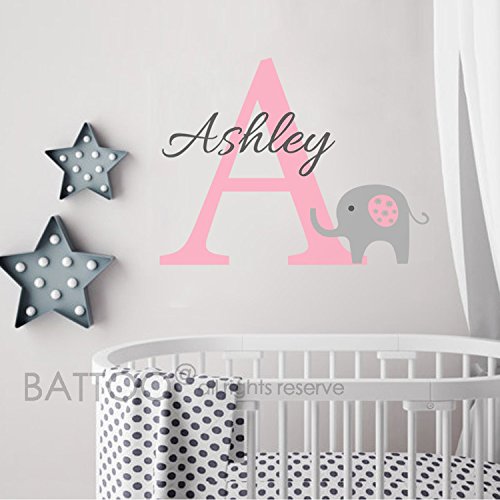-. Title : BATTOO Childrens Name Elephant Wall Decal - Girls or Boys Name Wall Decal - Baby Nursery Wall Decal - Elephant Monogram Wall Decals