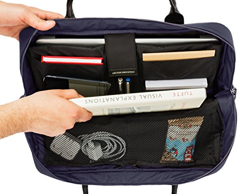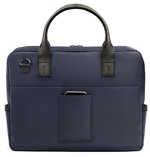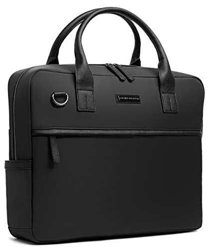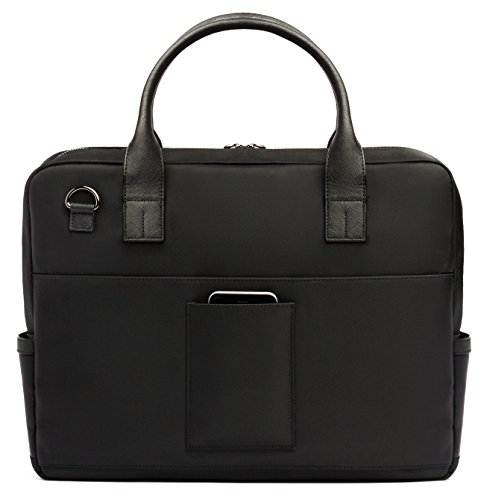 -. Feature : Style meets function with our signature design driven messenger bag for laptops up to 15" / The ultimate bag to carry and organize your laptop, iPad, iPad Mini, cables and accessories / It is made out of premium waterproof nylon / Thick black Saffiano leather carry straps, handle, front flap, and accents. / Measurements: 12"H x 16"W x 3.5"D