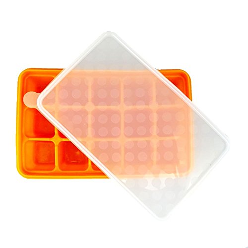 Honbay 15-Cube Silicone Ice Tray - 1 Pack - 1.2 Inch Cubes Keep Your Drink Chilled For Hours Without Diluting It (Orange)