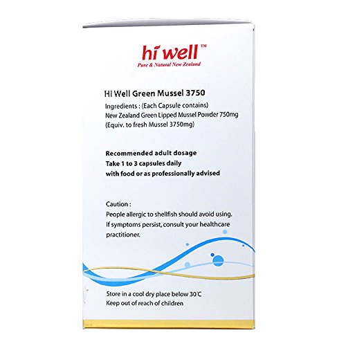 -. Binding : Health and Beauty -. Brand : Hi Well -. EAN : 9421901911577 -. Feature : 100% New Zealand Green Lipped Mussel / High strength joint support / Supports healthy joints and flexibility / Naturally rich in Omega 3 / Maintenance of healthy joints -. IsAdultProduct : 0 -. Label : Hi Well -. Manufacturer : Hi Well -. PackageQuantity : 3 -. ProductGroup : Health and Beauty -. ProductTypeName : HEALTH_PERSONAL_CARE -. Publisher : Hi Well -. Size : 180 Capsules -. Studio : Hi Well -. Title : Hi Well Premium Green Lipped Mussel 3750mg 180 Capsules New Zealand Green Lipped Mussel Extract Joint Health Support & Mobility (Pack of 3)