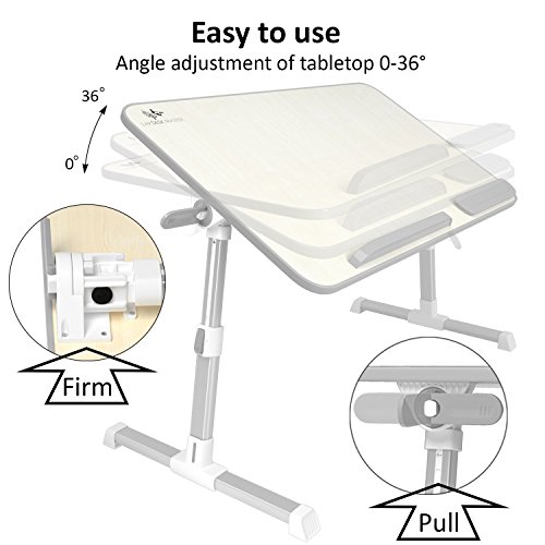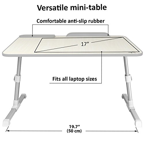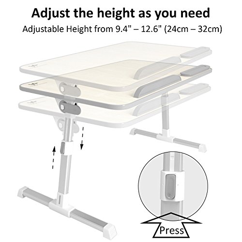 UNPARALLELED CONVENIENCE – With generous size of 20.5" x 11.8" (suitable for upto 17” laptops), ability to adjust height from 9.4"-12.6" with the help of auto-lock buttons on each side, adjustable surface angle (0-30), this adjustable laptop stand for bed is an unbeatable choice!