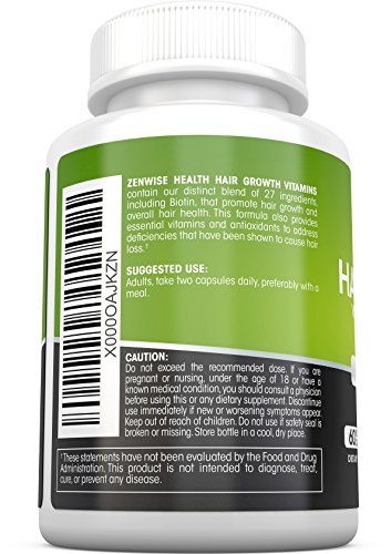 Zenwise Health's Hair Growth Vitamins supplement contains 27 eclectic ingredients that will work wonders for developing a great head of hair: