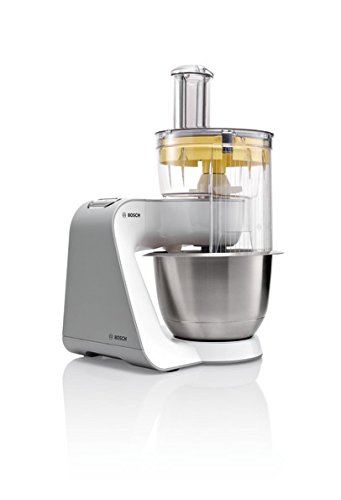 -. Feature : Extra starker Motor (900Watt) für anspruchsvolle Teige und schnelle Verarbeitung / Vielseitig einsetzbar mit Patisserie-Set (Schlagbesen, Rührbesen, Knethaken), Durchlaufschnitzler mit 3 Scheiben zum Raspeln, Reiben, Schneiden, zusätzlich Mix-Aufsatz und innovativer Würfelschneider / Große Rührschüssel aus Edelstahl (max. Teigmenge 2,0 kg) und 7 Arbeitsstufen plus starker Momentstufe für grenzenlosen Backspaß / Easy Arm Lift: Einfache und kraftsparende Ein-Knopf-Bedienung des multifunktionalen Rührarms mit 3 Antriebsstellen / Einfach und sicher zu bedienen (Bosch Technik); leicht zu reinigen (Spülmaschinen geeignetes Zubehör)
