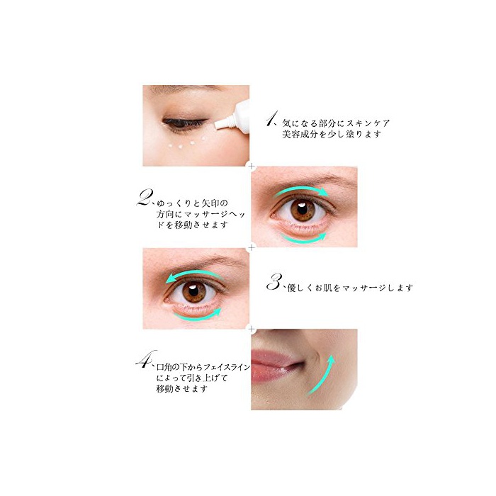 이온:이온 도입으로 해리의 피부에 케어로 입는다.미용 성분을【(눈매)눈가,볼,페이스 라인,이마와 목】에 침투시키고, 피부의 보습이나 각질이나 해리 부족 등의 기질트러블을 개선할 수 있고, 거기에(게다가),닿아 어려운 부분까지 집중 케어로 옵니다.겨울에 피부(기)가 조금 건조 때문에,사용전에 크림을 피부에 도하면,효과가 더 좋습니다.