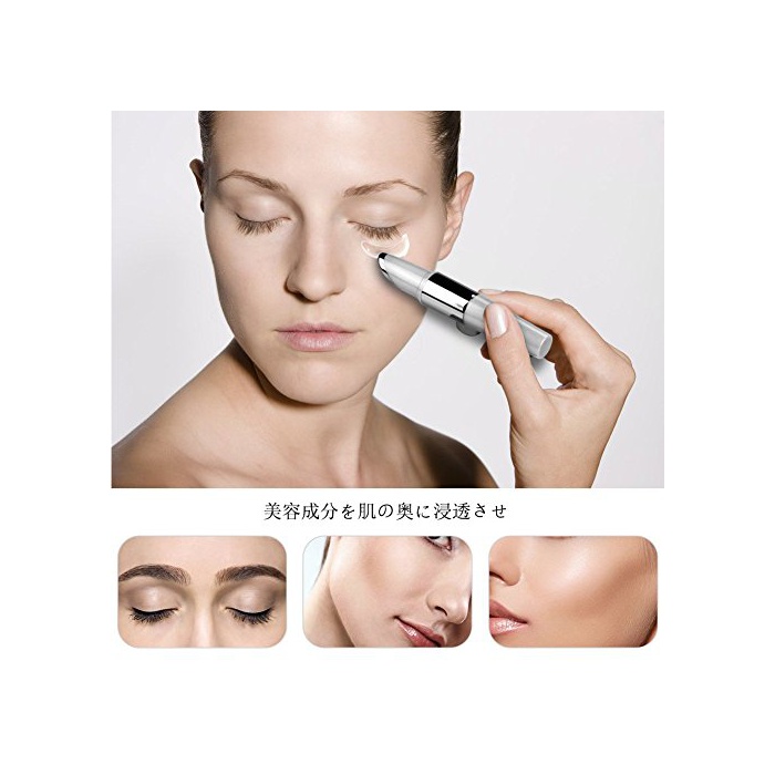 진동:158회의 고속 진동으로 피부에 충분한 맛사지 할 수 있는.긴장인 피부에 부드러운 맛사지를 주고,【(눈매)눈가,볼,페이스 라인,이마와 목】등의 부분을 릴랙스 할 수 있는.또한 진동과 온열의 기능에 의해 모공을 열고, 얼룩이 불어 오를 수 있습니다.