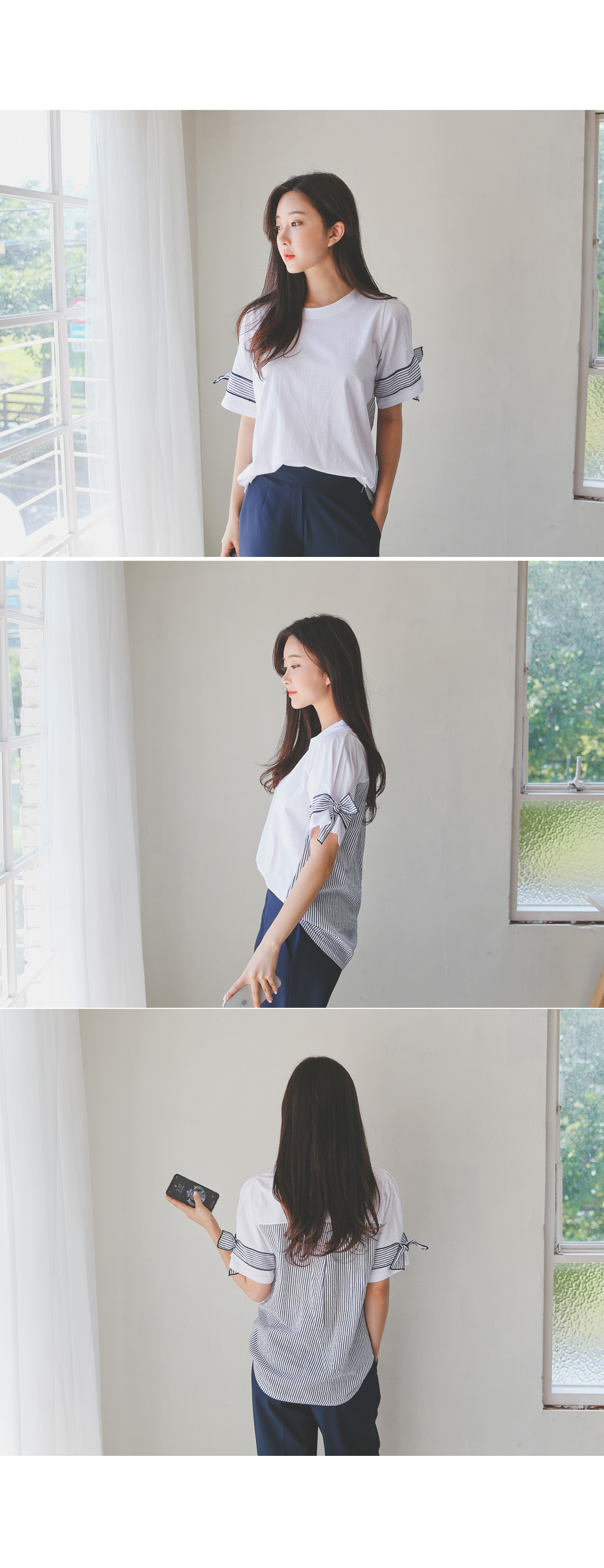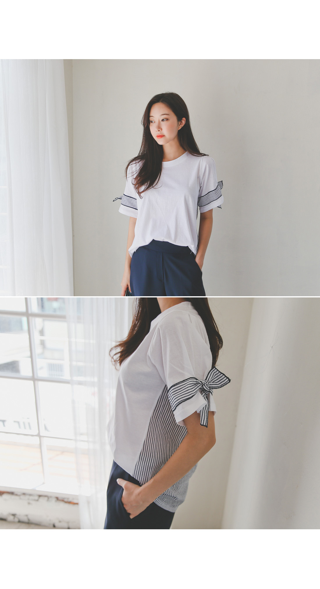 베이직한 디자인에 소매와 백라인 디테일로
