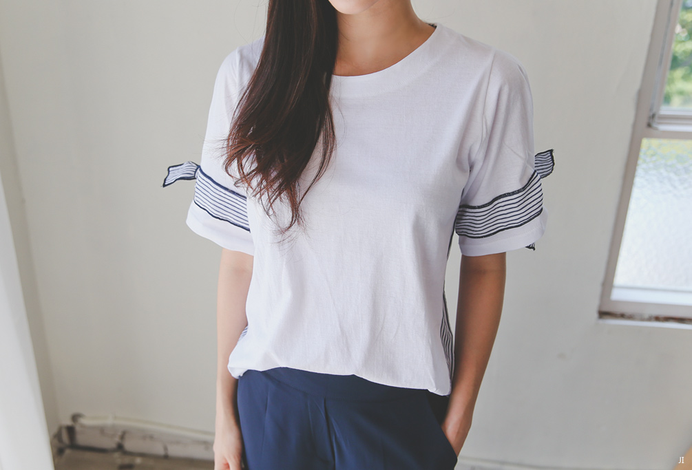 # ts8660 퍼퓸 배색리본반팔티