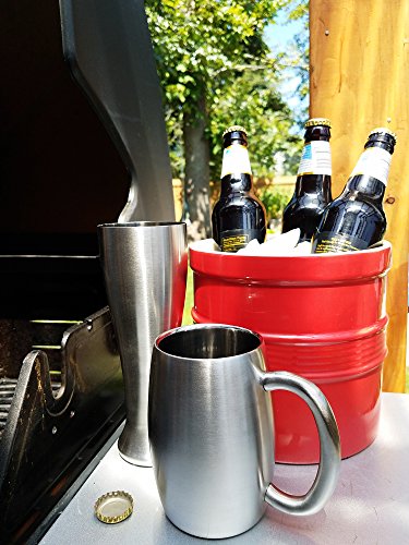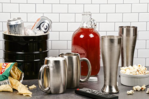 Keep your coffee hot and your beer cold with the RSVP Endurance double walled beer mug. This sleek mug features a double-walled construction, creating an air pocket that keeps your drinks at their desired temperature without condensation. This mug sports a clean stainless steel look with a polished interior and a brushed exterior that lets everyone know you mean business. Solid and sturdy, this mug is also dishwasher safe for your convenience. 3" diameter x 6" H, with a 15 ounce capacity.Feature