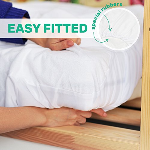 -. Title : Crib Mattress Cover & Protector – 100% Waterproof + Bug’s Protective - Non-Toxic & Hypoallergenic Organic Premium Easily Fitted Cotton Terry Cover – by CareMe