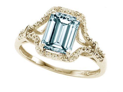 -. Title : Tommaso Design 8x6mm Emerald Cut Genuine Aquamarine Ring 10kt Gold