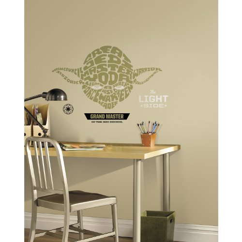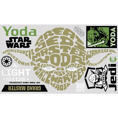 -. Binding : Tools & Home Improvement -. Brand : RoomMates -. Color : Multi -. EAN : 0634894716657 -. Feature : Comes with 12 wall decals; decal range size 2" wide x 2" high to 28.75" wide x 16" high / Easy to apply - just peel and stick / Applies to any smooth surface / Decals are removable and repositionable with no sticky residue / Wall Decals made in the USA -. IsAutographed : 0 -. Label : RoomMates -. Manufacturer : RoomMates -. Model : RMK2385GM -. MPN : RMK2385GM -. NumberOfItems : 1 -. PackageQuantity : 1 -. PartNumber : RMK2385GM -. ProductGroup : Home Improvement -. ProductTypeName : BUILDING_MATERIAL -. Publisher : RoomMates -. Size : One Size -. Studio : RoomMates -. Title : RoomMates Star Wars Typographic Yoda Peel and Stick Giant Wall Decals -. UPC : 034878787398