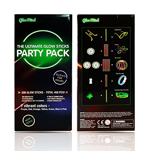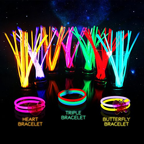 -. Feature : ULTRA BRIGHT AND LONGER LASTING - Perfectly engineered under strict quality control, these glow sticks are made from high quality materials to ensure up to 6 hours of glowing light so you could enjoy your party all night without worrying they would fade away. / MULTI COLOR ULTIMATE GLOW STICKS PARTY PACK - This pack was thoughtfully designed to provide the ultimate glow party experience. Whether you are into chicy eyeglasses, cool triple bracelets with stylish heart shaped connectors or mind blowing glow balls, our party kit gets you covered. / KIDS SAFE (NON LEAKING AND NON TOXIC) - We've designed our glow sticks so that you can be relaxed knowing your kid is safe when playing with them. Their sturdy design makes them harder to snap so they don't easily break and start leaking like similar products on the market. / QUALITY CONNECTORS THAT STAY PUT - Probably the most annoying thing is to start putting your glow sticks bracelets together only to find out that the connectors are so poorly made that they just keep popping. Unlike others, we've made sure to use only top notch materials so your connectors stay put. / GUARANTEED TO WORK OR YOUR MONEY BACK - Unlike so many other party packs out there, our glow sticks are guaranteed to work (seriously, if they don't, just contact us and we'll make sure to refund your money). Don't settle for cheap alternatives unless you want to find out half of the glow sticks you've purchased are dull.