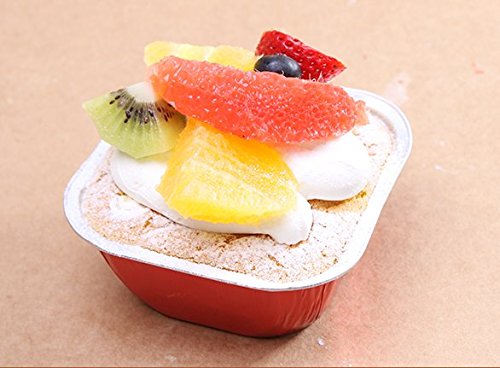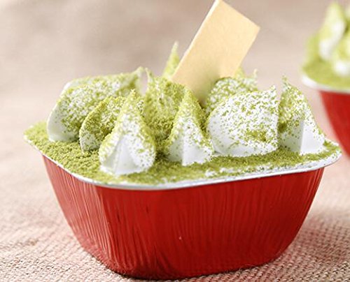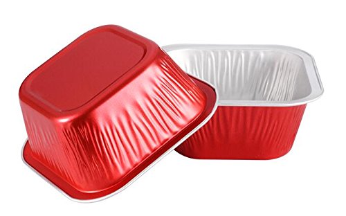 KEISEN square 3" 100/PK 4oz Disposable Aluminum Foil Cups 100ml for Muffin Cupcake Baking Bake Utility Ramekin Cup 100/PK (Red)