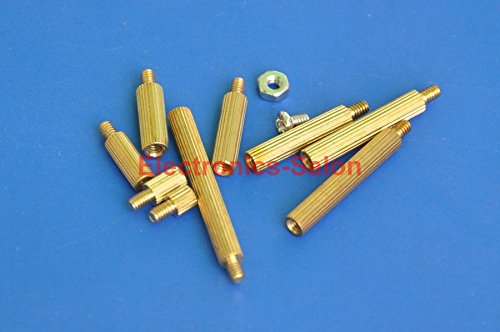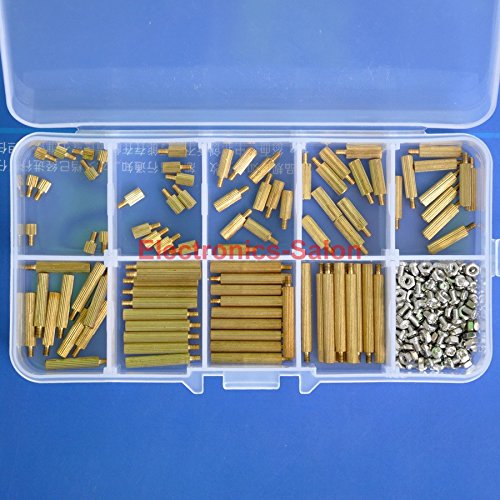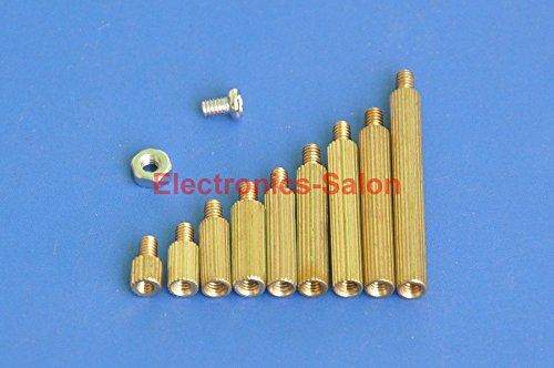Electronics-Salon M2 Brass Male-Female Standoff Screw Nut Assortment Kit, Standoff 3mm 5mm 8mm 10mm 12mm 15mm 18mm 20mm 25mm, Nut M2, Screw M2 x 4mm.