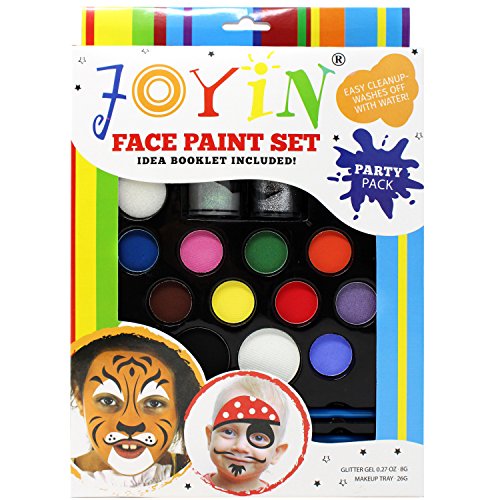 Joyin Toy Face Paint Ultimate Party Pack - 12 Colors, 24 Stencils, 2 Glitter Gel, 3 Brushes and Idea Booklet Included, Easy on & Easy Off, Non-Toxic, Arts & Crafts for All Parties