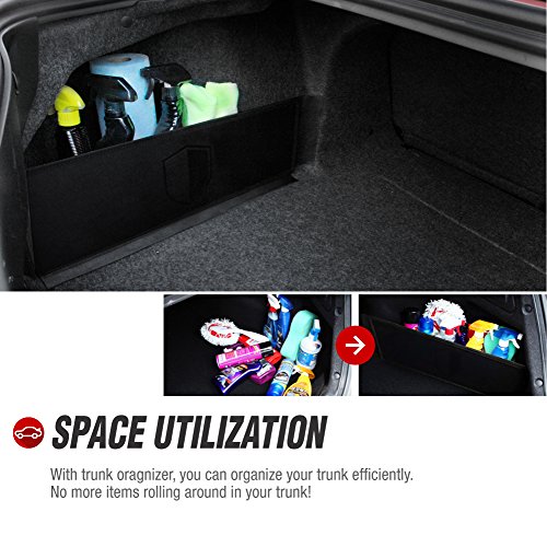 MATERIAL & DESIGN. The open design is simple to use, and applicable to all carpet lined trunks. Attach, and store. The trunk organizer is made with polyurethane, a waterproof material.