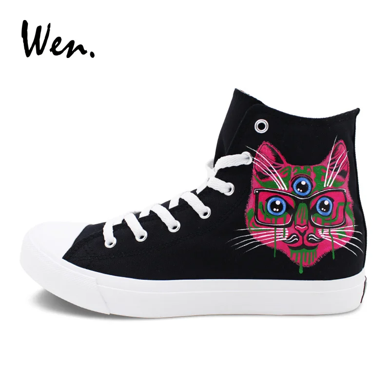 Pattern:Art 3 eyes cat hand-painting shoes canvas sneakers
