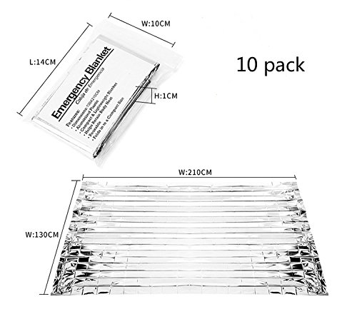 Emergency Mylar Thermal Blanket (10 Pack ) Survival in Cold and Serious Weather Heat Retention Perfect for Outdoor, Survival, Bug Out Bag, First Aid Kit