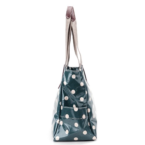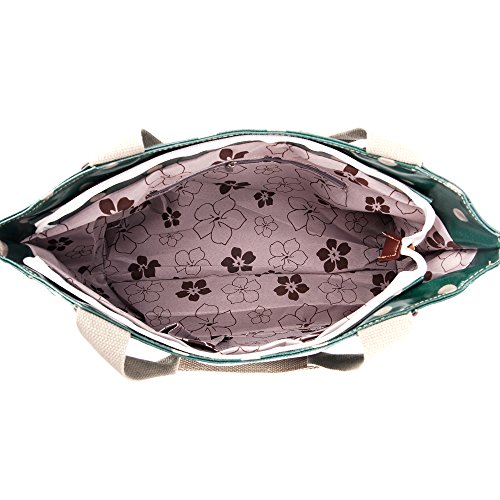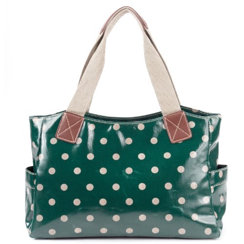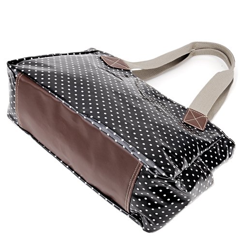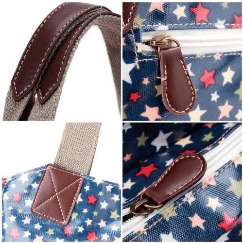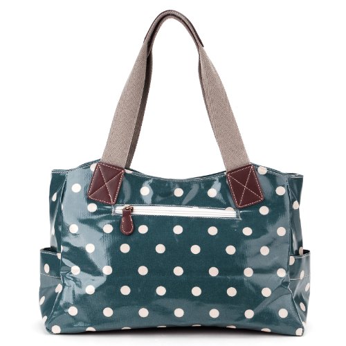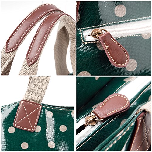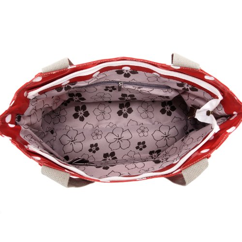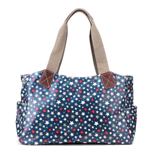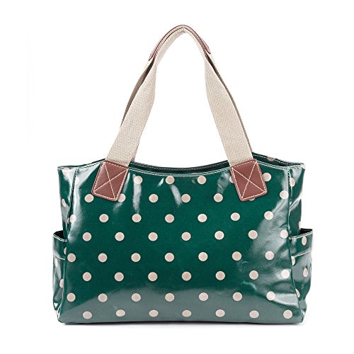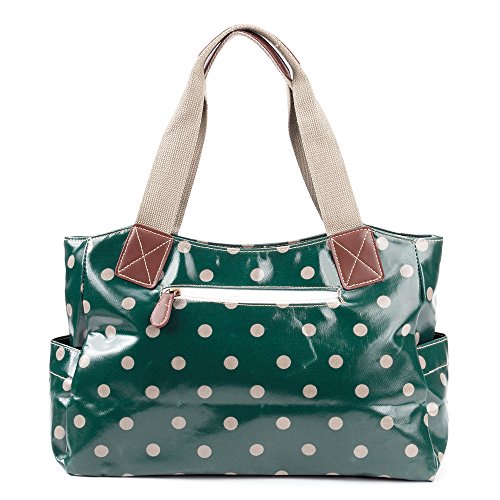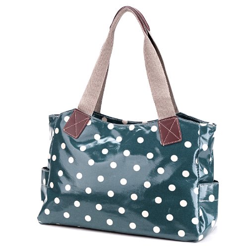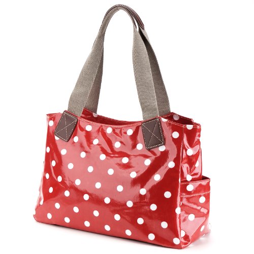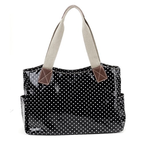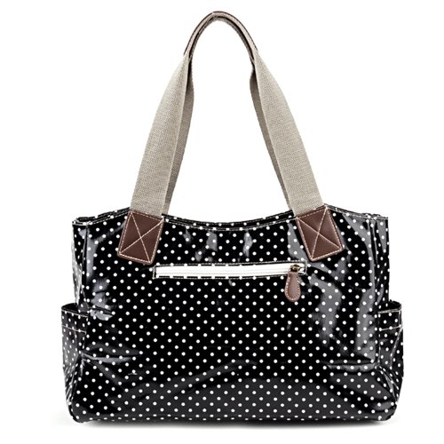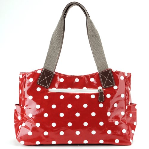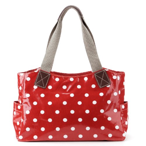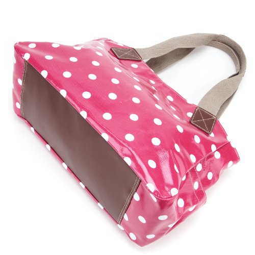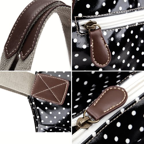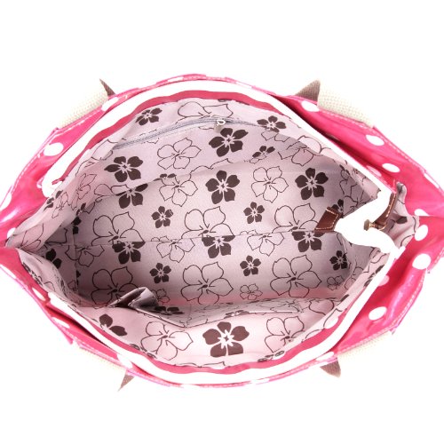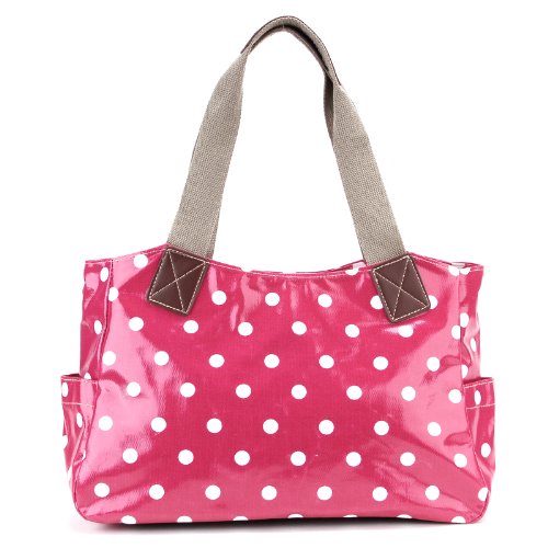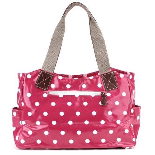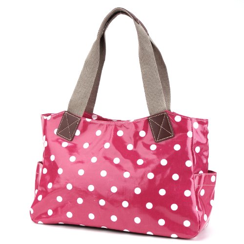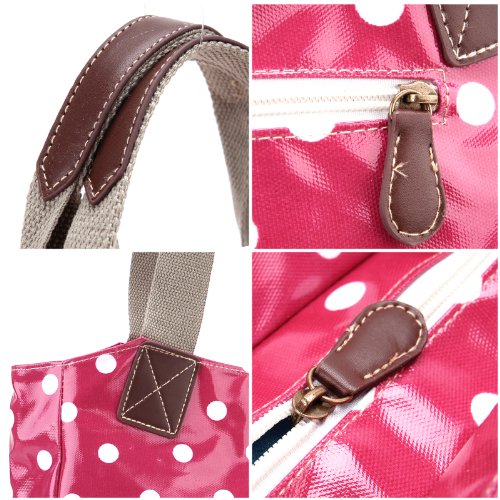 - Feature : brand new Anladia women handbag with our own logo on the zip tag. Made using oilcloth, completed with leather trims, they are easy to care for. / This design features our popular Stars print in a pretty Hot pink color / Fashionable polka dots pattern.The durable oilcloth finish makes it easy to wipe clean and it is completed with cotton webbing handles and leather trim / Zip closure flap and rear pocket. Good as a school bag, work bag or nappy bag, etc. / It has one main zipped compartment, inside it has one large zipped pocket divider,
