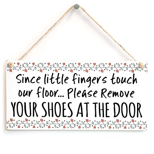 Since little fingers touch our floor... Please Remove Your Shoes At The Door - Beautiful Handmade Sign Take Off Your Shoes Plaque Wooden Hanging Sign 4" X 8"