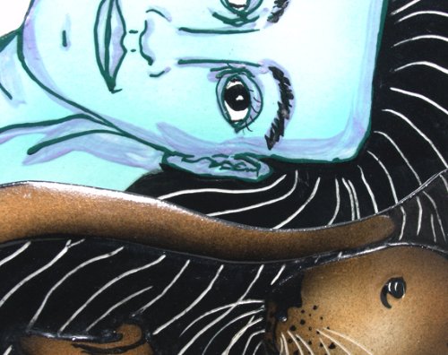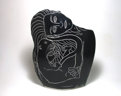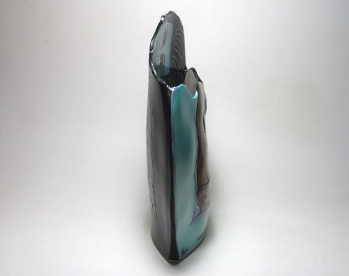 - Feature : Original artist hand made creation, signed by the artist - Nels Linde / Has two unique views with the same image in black with white incised line on the back / Individually hand sculpted and decorated under glaze / High fire 2400 degree English grolleg porcelain holds water for flowers / Both a unique sculpture and a decorative and functional vase