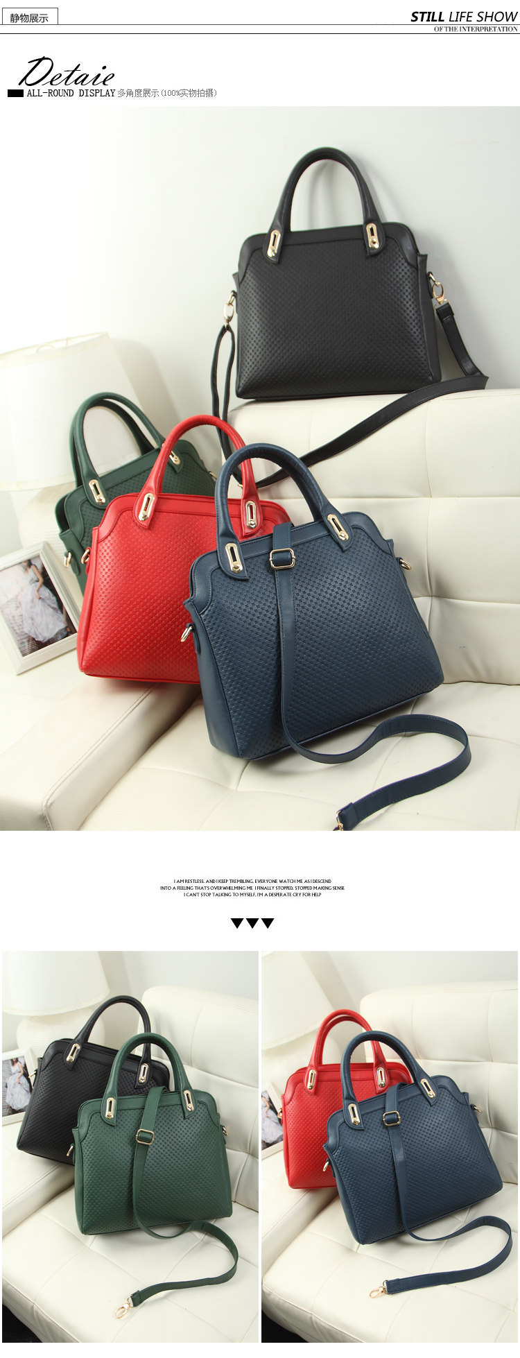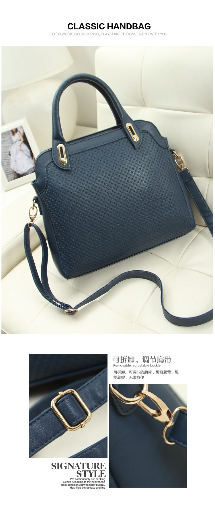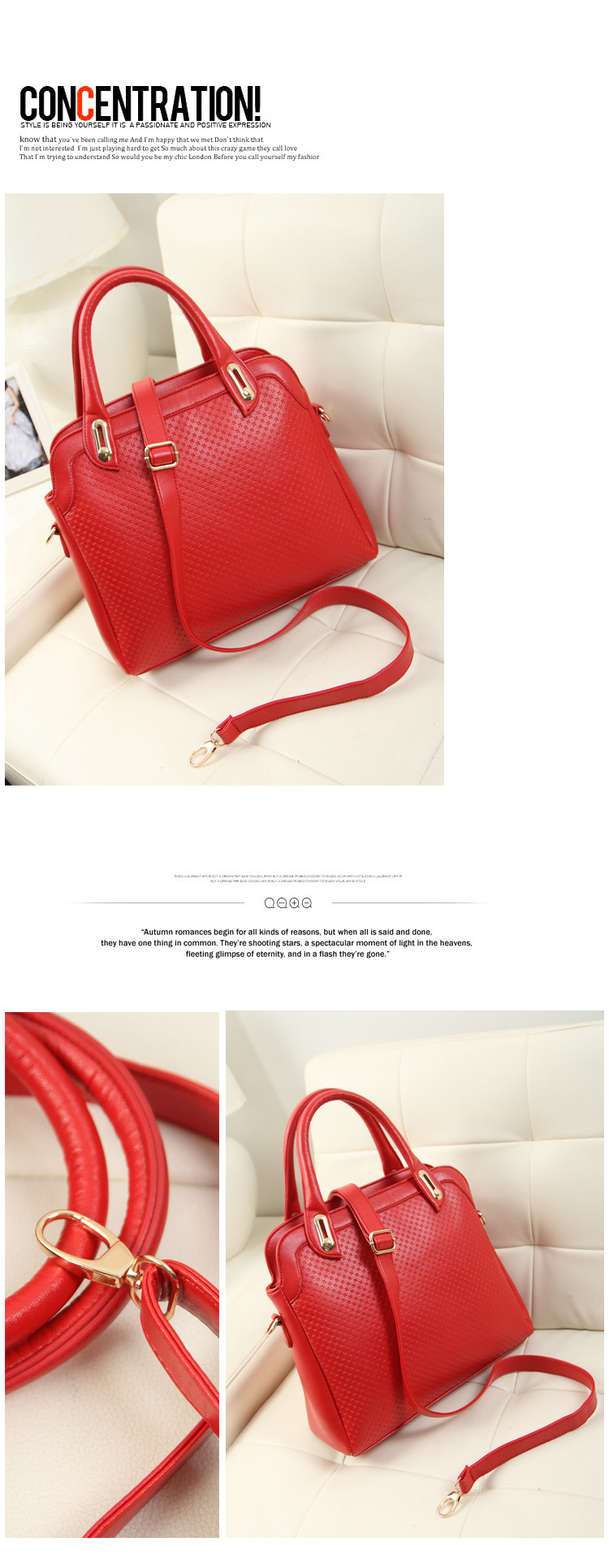Size: Width 30 CM, high 23 CM, thick 12 CM, shoulder strap 50CM, 14CM Portable