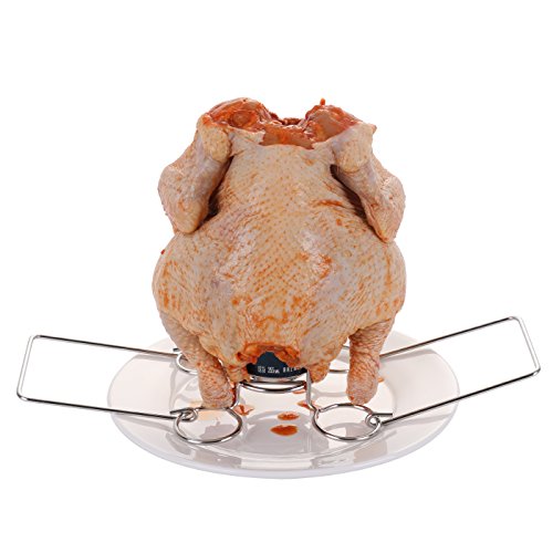 Aozita Beer Can Chicken Holder is perfect to cook a moist and tender chicken via your favorite canned beverage such as beer or soda. It could be used in variety of cooking appliance:instant pot, gas grill, charcoal grill, electric grill, smoker and oven. The large circular wire base keeps the chicken upright for roasting. It is also very easy cleaning and Dishwasher safe.
