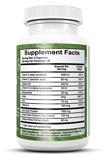 NATURAL BOTANICAL BOOST - GRAPE SEED EXTRACT source of Polyphenols, RESVERATROL and Oligomeric Proanthocyanidins (OPCs) - powerful antioxidants that play an important role in the development of collagen, improves health and helps promote eye, skin and brain health. GINGKO BILOBA widely used for BRAIN HEALTH and MEMORY! FLAX SEED is high in Omega 3 fatty acids.*