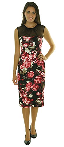London Times Women's Fitted Sheath Illusion Neckline Dress