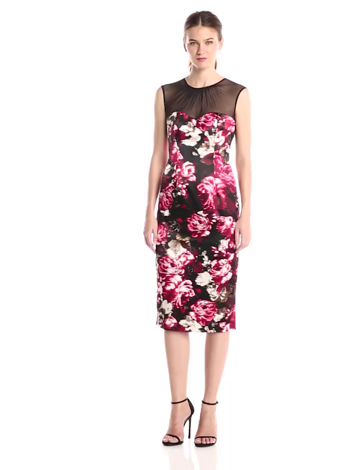 Product DescriptionPrinted sheath with illusion neckline0