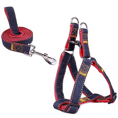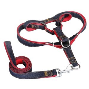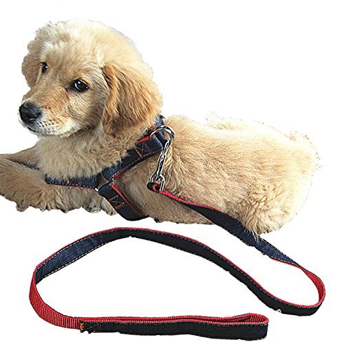 Heavy Duty Construction: Two layers of sturdy solid denim cloth and comfortable red nylon cloth Dog leash harness collar incredibly resistant to wear and tear.
