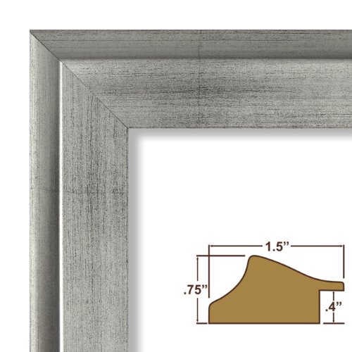 -. Feature : Modern style, aged silver with smooth distressed finish / Frame includes: clear styrene facing, rigid cardboard backing and wire hanging hardware kit (some assembly required). / Fits a 20x30 Photo/Print/Poster. (Viewable area is slightly smaller) / Frame moulding is 1.5 inches wide, Wood composite. / Frame measures 20 inches by 30 inches